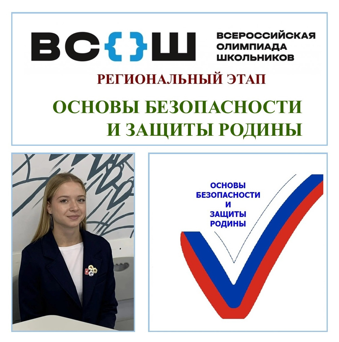Поздравляем обучающуюся 10 класса МБОУ «Кингисеппская средняя общеобразовательная школа № 1», достойно выступившую на региональном этапе Всероссийской олимпиады школьников по Основам безопасности и защиты Родины: