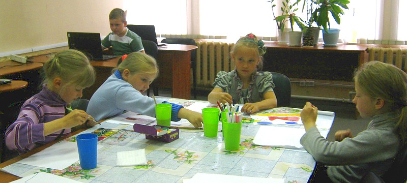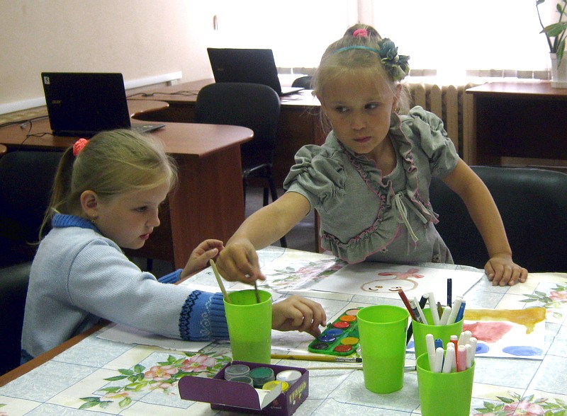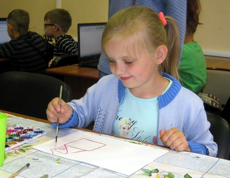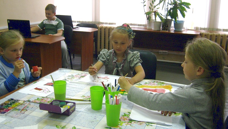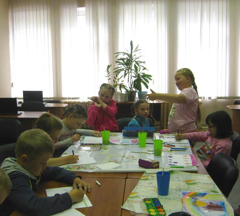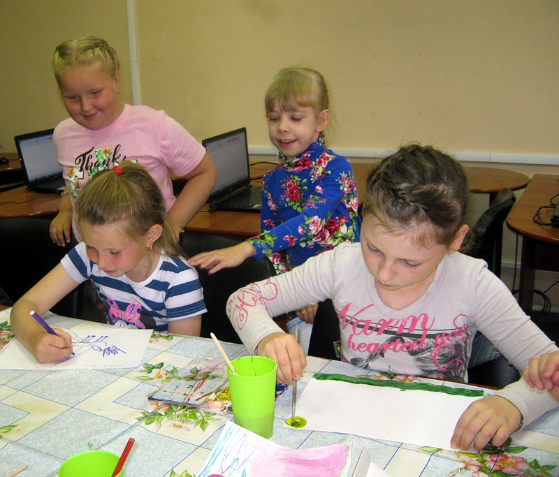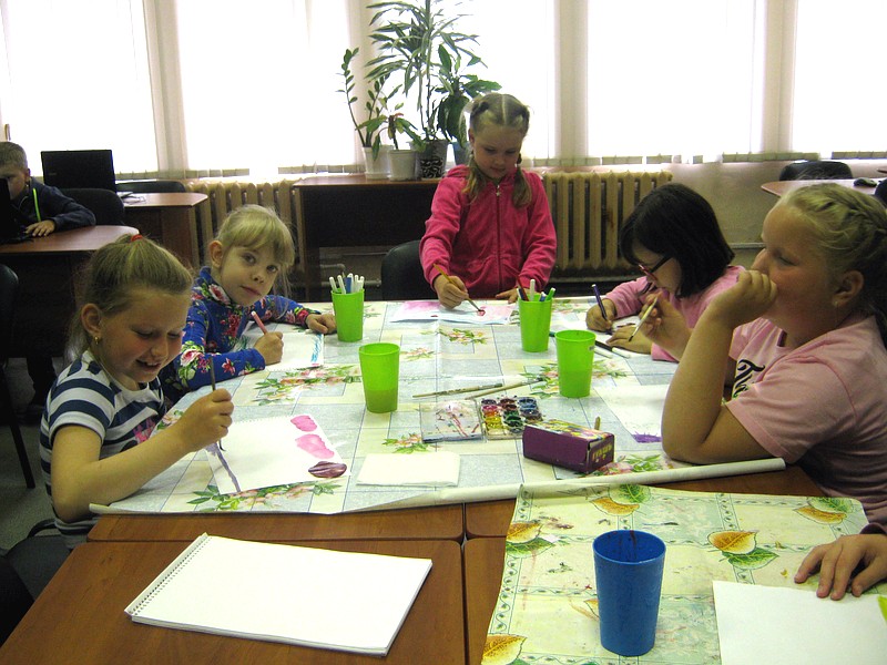 Те, кто справились с заданием раньше остальных, продолжили творить на альбомных листах с помощью акварельных красок.